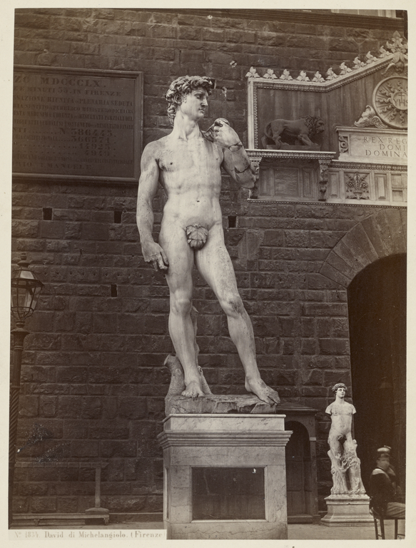 Quella foglia rimase in essere per secoli tanto che quando il gigante fu portato nella Galleria dell’Accademia, ancora la possedeva. Fu rimossa solo in un secondo momento.