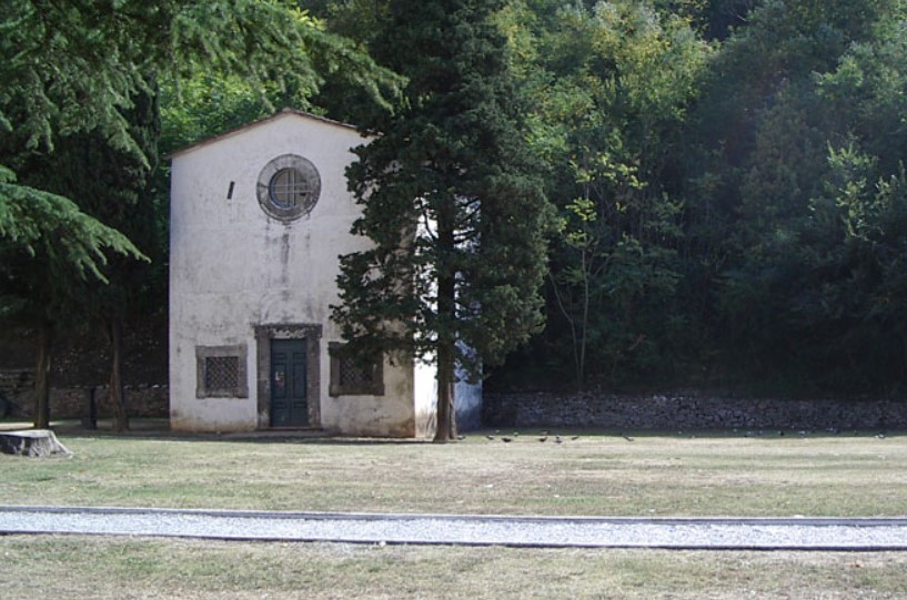 Sulla destra del Palazzo Mediceo c’è una piccola cappella oggi sconsacrata. Questa cappella è addirittura successiva alla costruzione dell’edificio principale. Fu fatta erigere al tempo di Maria Cristina.