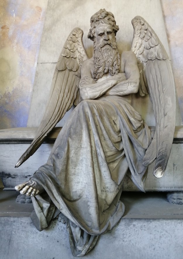 The sculpture of the day that I propose to you today is Chronos, sculpted by the artist Santo Saccomanno for the tomb of Erasmo di Giuseppe Piaggio, located in the lower portico to the east of the Monumental Cemetery of Staglieno, Genoa.
