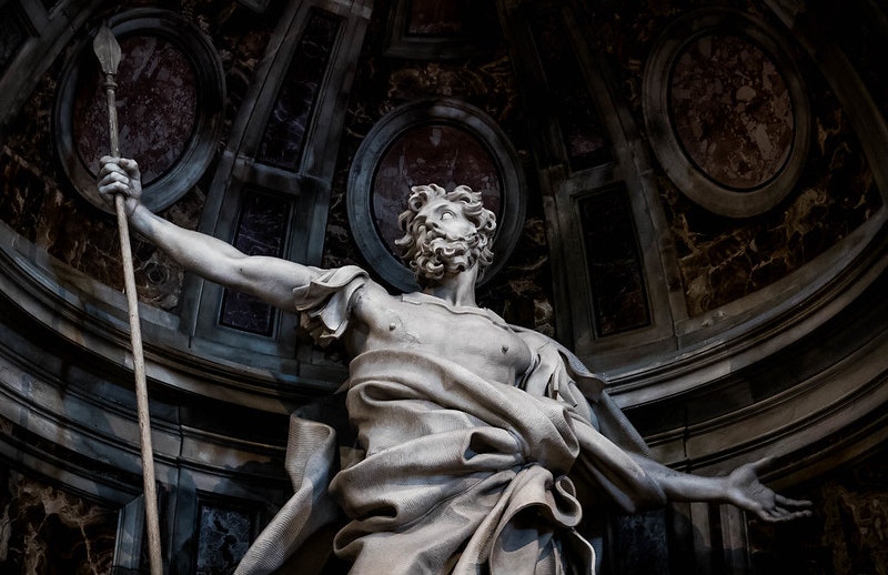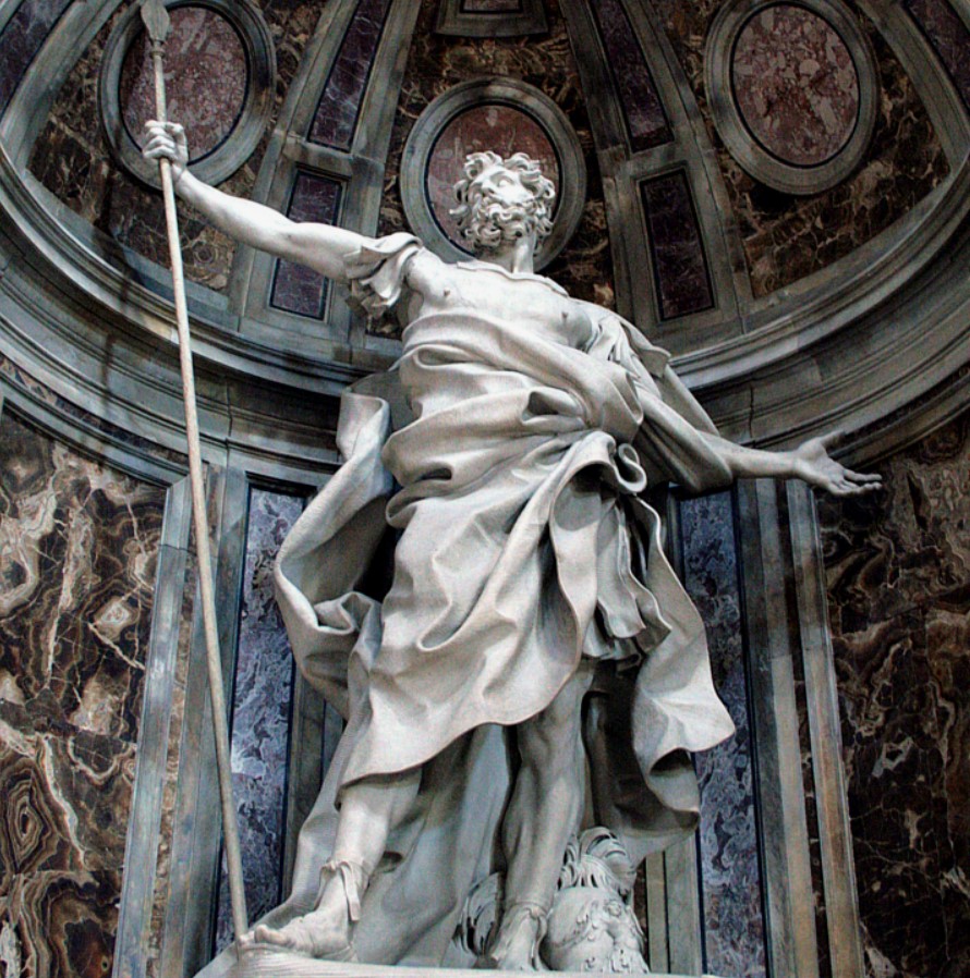 The Baroque sculptor created the work over a period of seven years, between 1631 and 1638, choosing to depict the man immediately converted after committing the famous gesture. As he looks upwards, Saint Longinus has a cloak that wraps his body that seems to be moved by the wind.