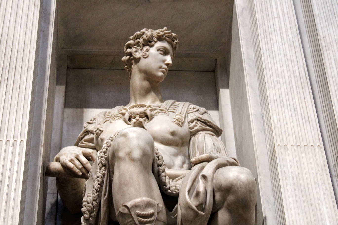 Cominciai a metter mano ai lavori per la Sagrestia Nuova a partire dal 1521 ma, solo sei anni più tardi, la situazione a Firenze fu stravolta. I Medici furono cacciati dalla città e abbandonai l’impresa. Come sapete appoggiai apertamente la Repubblica Fiorentina provvedendo anche a progettare la fortificazione della città e quando i Medici tornarono al potere dovetti nascondermi per evitare ritorsioni che mi sarebbero probabilmente costate la vita.