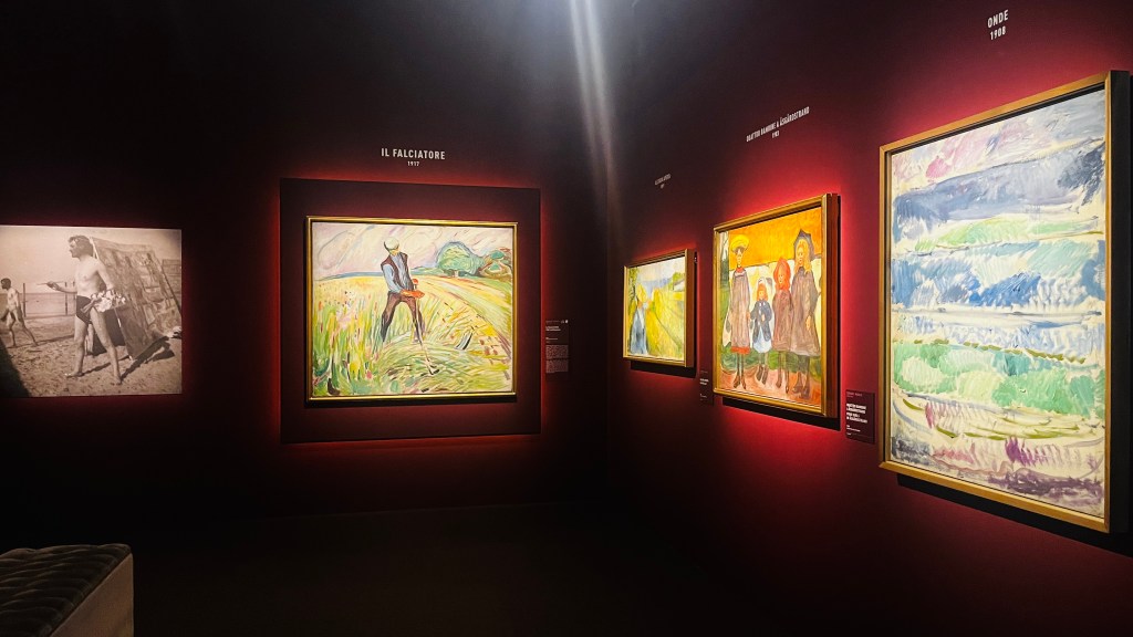 L’esposizione ha come tema centrale il ‘grido interiore’ di Munch e il suo voler costruire, attraverso blocchi di colore uniformi e prospettive discordanti, lo scenario per condividere le sue esperienze emotive e sensoriali.
