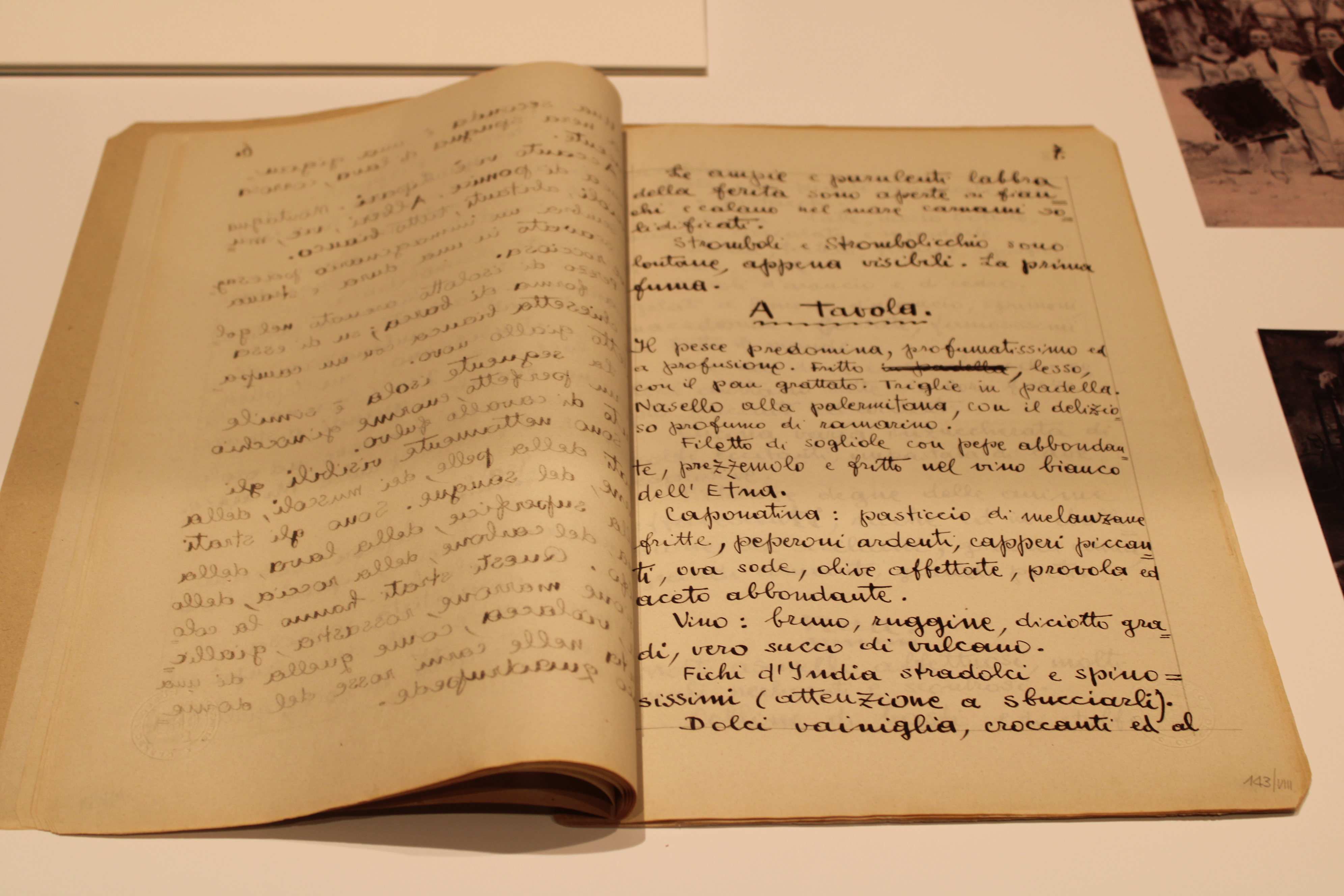 Il legame che Depero aveva con il cibo, la tavola e i luoghi di consumo è predominante nelle sue creazioni. Basta leggere uno stralcio, per altro scritto in ottima grafia, di ciò che si ritrovava dinanzi sulla tavola durante il suo viaggio in Sicilia per comprendere quanto fosse grande la sua passione per il buon mangiare e di tutti quei riti che si svolgono in cucina.