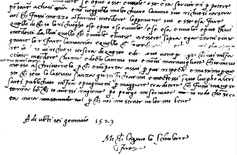 The last time I wanted to sign a letter with the signature Michelangelo Sculptor dates back to 1526, writing to Giovan Francesco Fattucci.