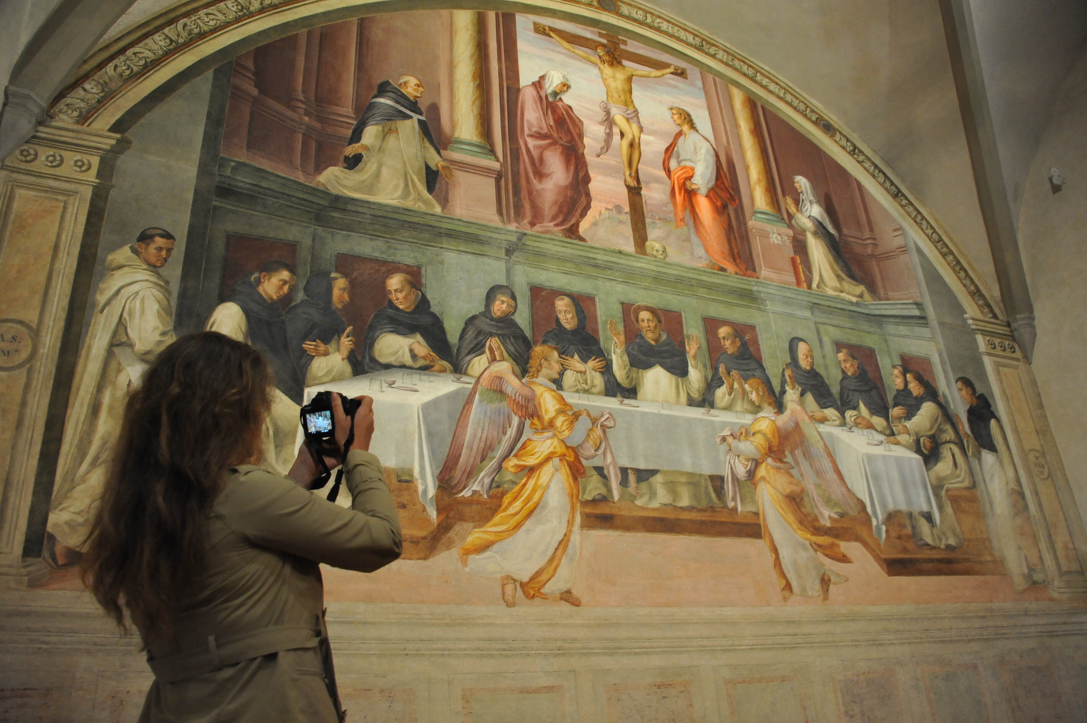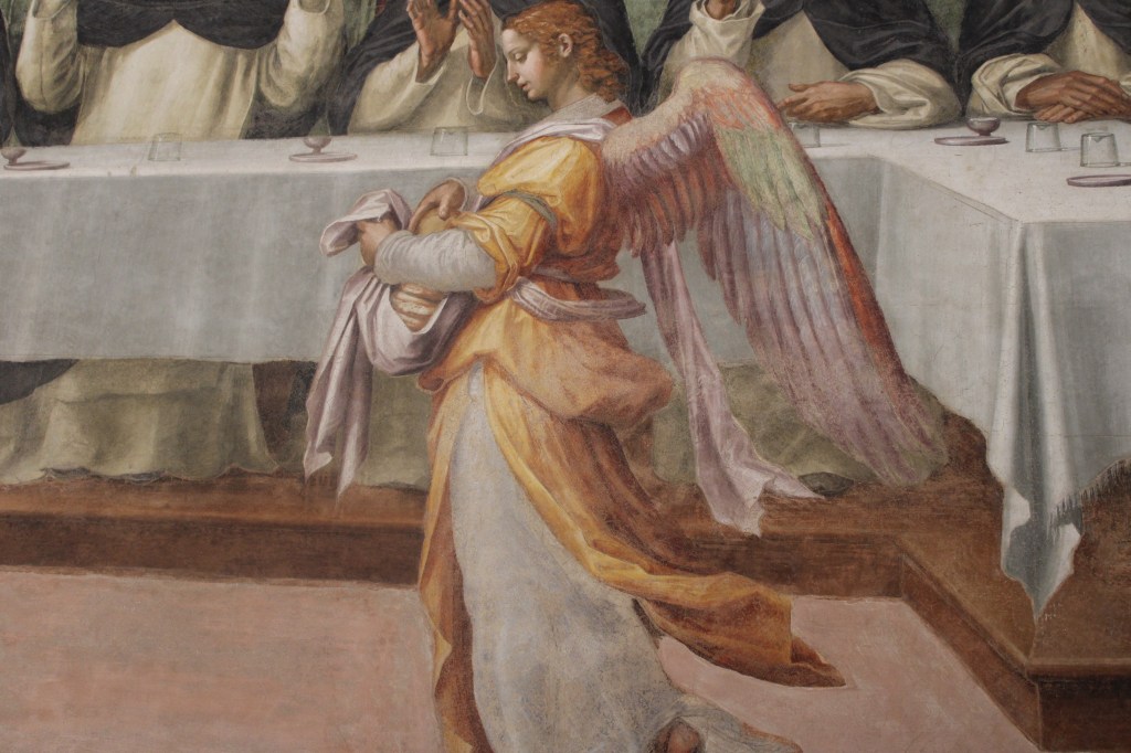 The large fresco by Antonio Sogliani, dated “A[nno] s[alutis] MDXXXVI” 1536, occupies the entire back wall of the refectory.
