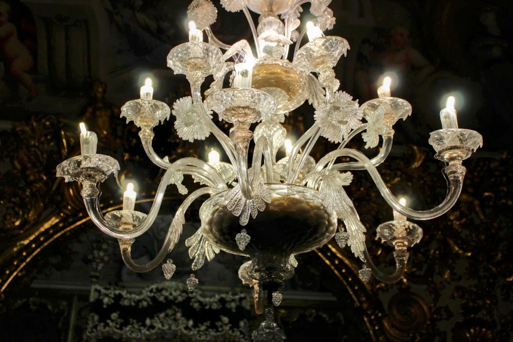 Entering the Music Room, you find yourself in front of a riot of frescoes while behind, high up, the stage where the orchestra was usually positioned carved in wood.