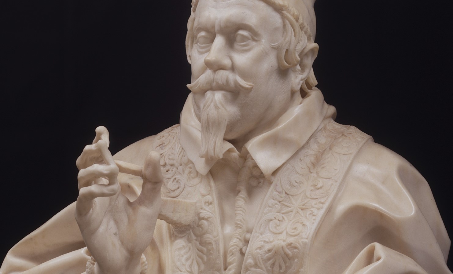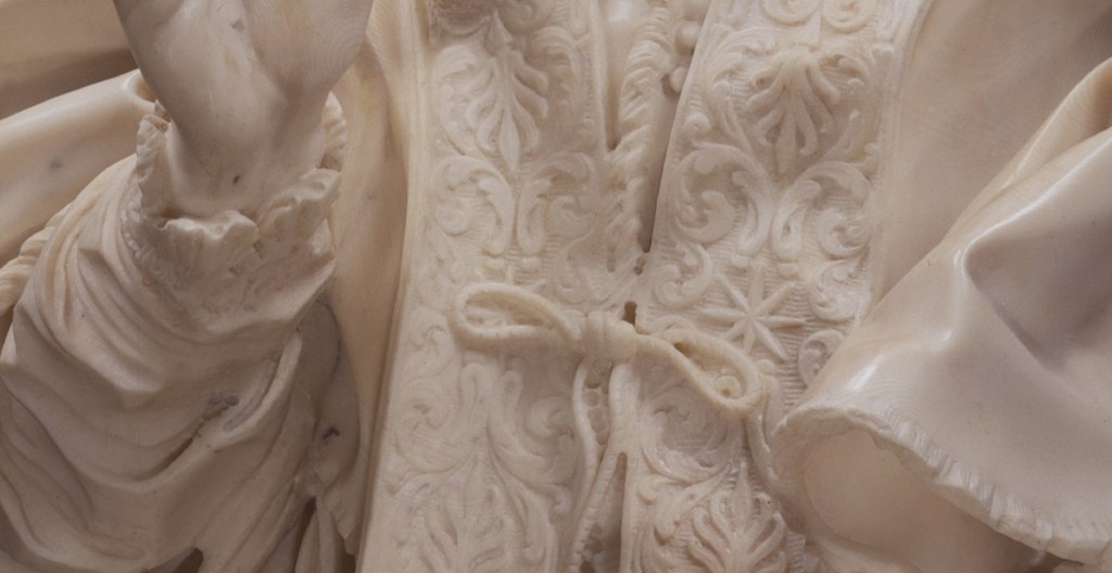 What is surprising in this masterpiece are the details to which Bernini paid particular attention. The sleeves of the robe that end with a lace ruff worked with a drill whose holes are still clearly visible, the embroideries in relief that decorate the pontiff’s cloak and those nervous and knotty hands, with clearly visible veins.