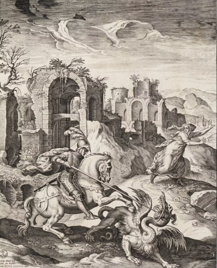 Cornelis Cort, from Giulio Clovio, Saint George and the Dragon, burin, 1577