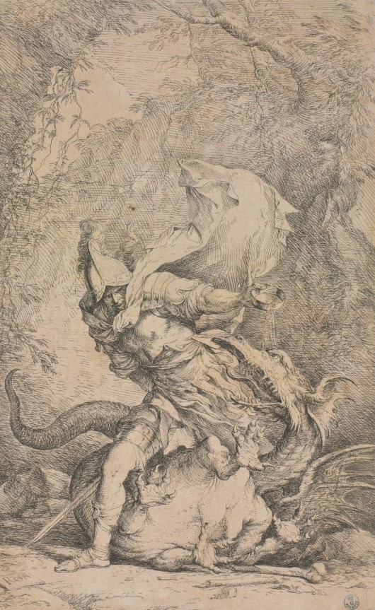 Salvator Rosa, Jason Puts the Dragon to Sleep, etching and drypoint, 1663-1664
