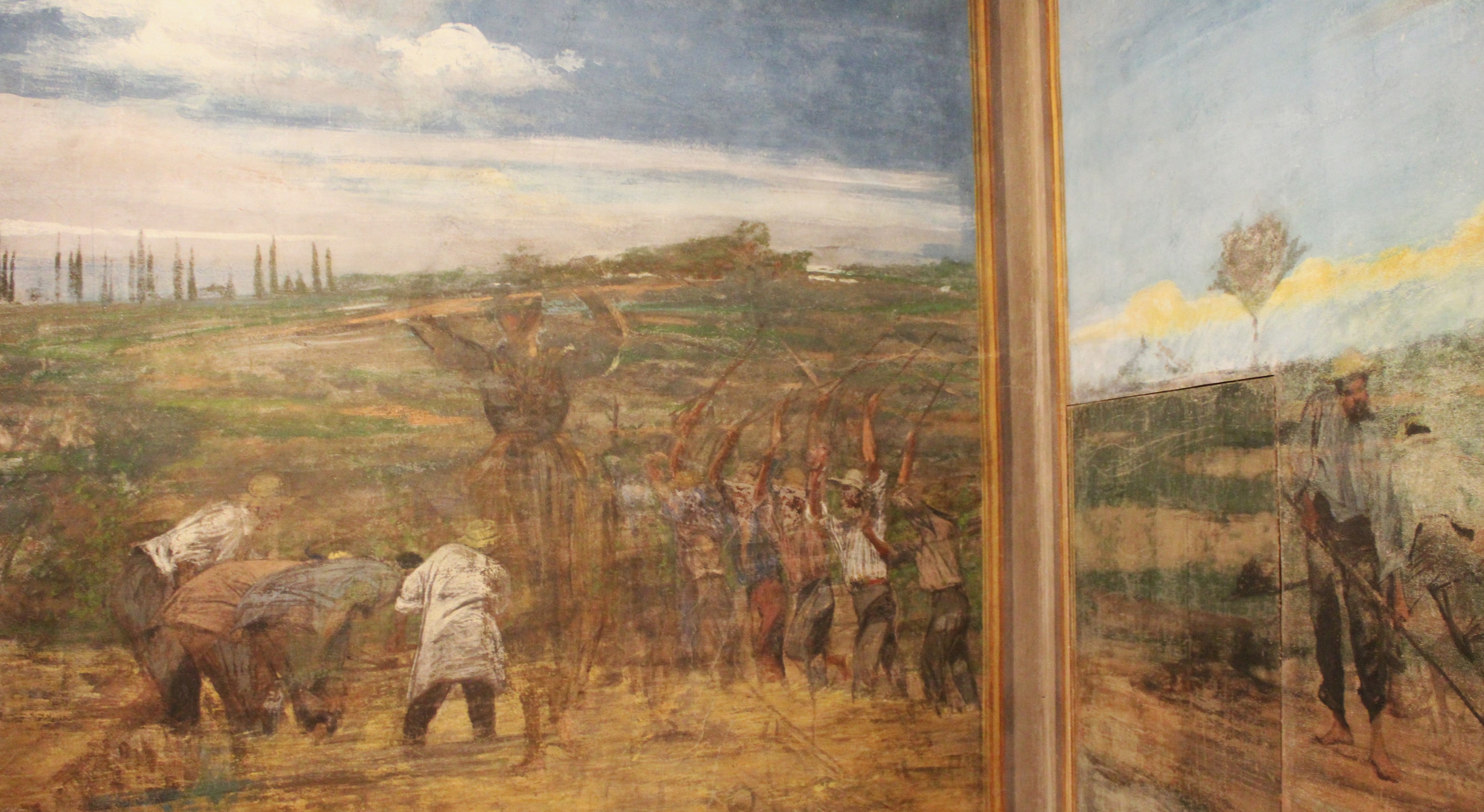 Wheat Beaters: it is the most dynamic panel, full of movement. It shows peasants intent on working the wheat.