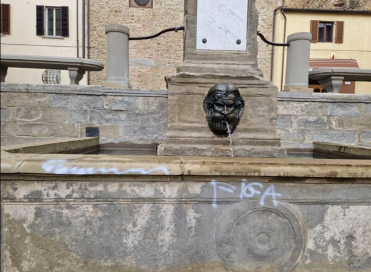 In Sansepolcro, the fountain in Piazza Garibaldi was vandalized a few hours after the completion of the restoration work. A writing made with white paint appeared during the night between 91 and 20 November on the front.