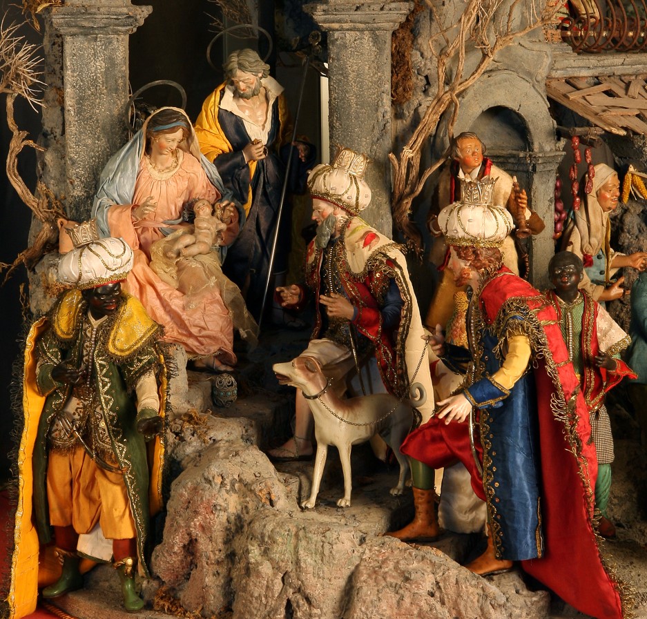 The itinerary ends in the crypt of San Sepolcro with a selection of figures of the Magi and three complete nativity scenes with Adoration of the Magi from the Museo del Presepio in Dalmine.