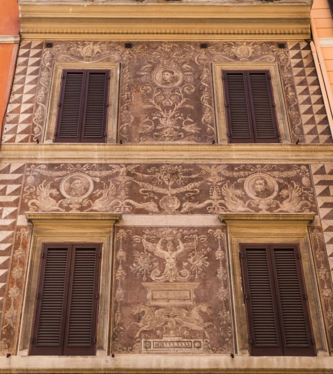 A Roma, in Via Crispi, sotto lo sguardo distratto di turisti che passano davanti senza nemmeno notarlo, c’è un palazzo che ha la facciata decorata con sgraffiti tutt’altro che trascurabili.