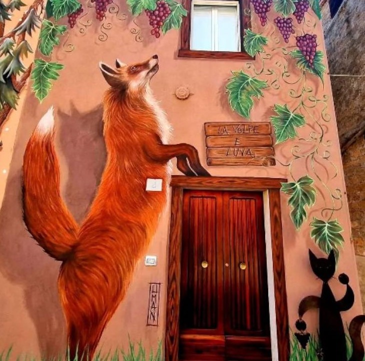 What was the intuition that changed the destiny of Sant’Angelo that seemed sealed? To create murals on the walls of the houses with the most beautiful fairy tales ever.
