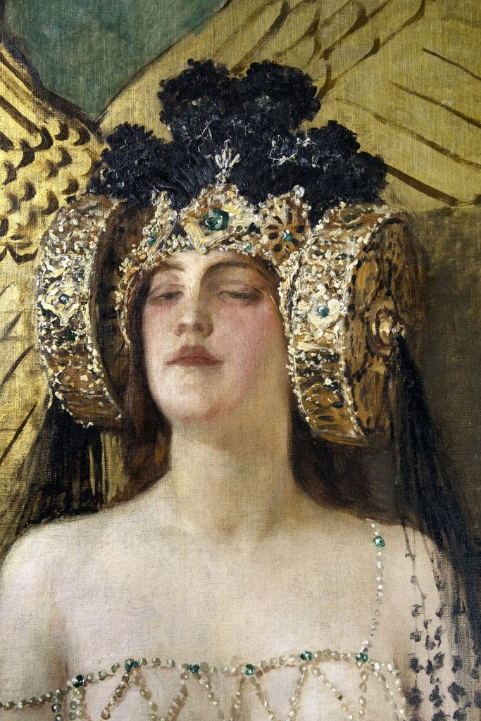 Another source of inspiration for him was the Lady of Elche, the ancient female bust found in Spain in 1897, taken up to paint the precious headdress of the Babylonian queen.