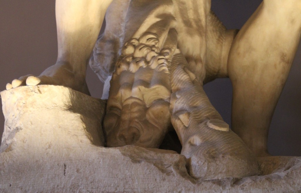 The sculpture of the day that I propose to you today is the group of Ecole and Diomedes sculpted by Vincenzo de’ Rossi that is located in the Salone de’ Cinquecento of Palazzo Vecchio, not far from my Genio della Vittoria.