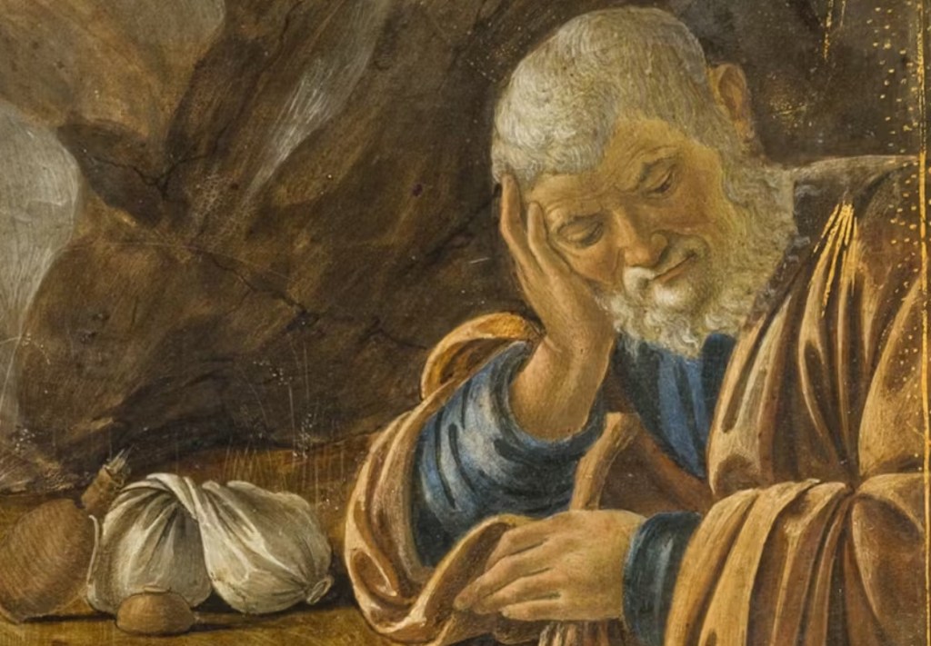 Secondo quanto riportato dal mio caro amico Giorgio Vasari, avrebbe le sembianze di Cosimo il Vecchio il quale accarezza i piedi del Bambino ma interponendo un velo: segno di profondo rispetto.