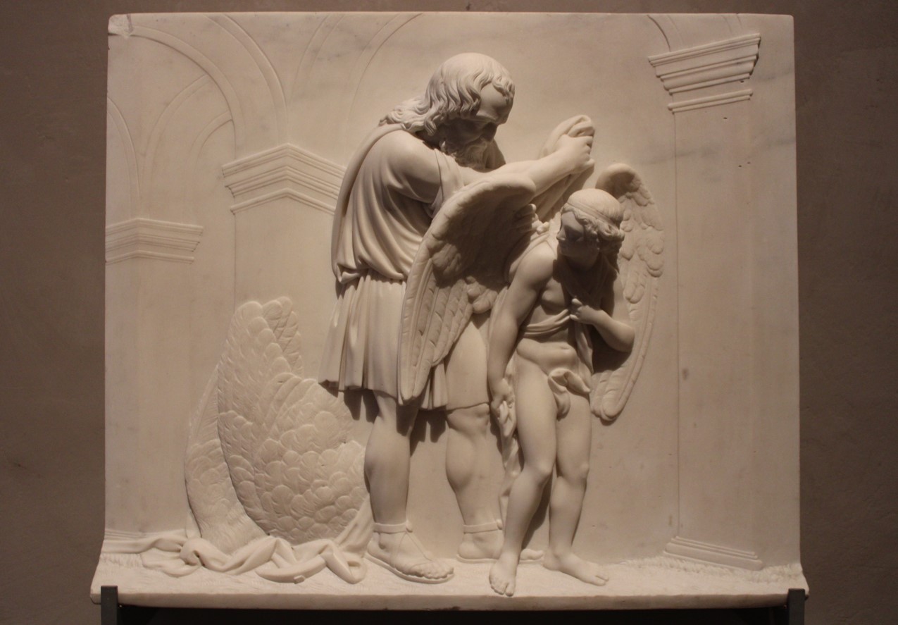 Franchi’s bas-relief is very detailed. Observe how carefully the artist sculpted the sandals that Daedalus wears and the feather wings that Icarus is already wearing.