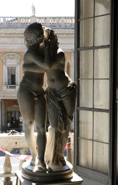 La scultura di Amore e Psiche che si trova ai Musei Capitolini fu scolpita tra il 130 e il 160 dopo Cristo e la potete ammirare nella Sala del Galata.