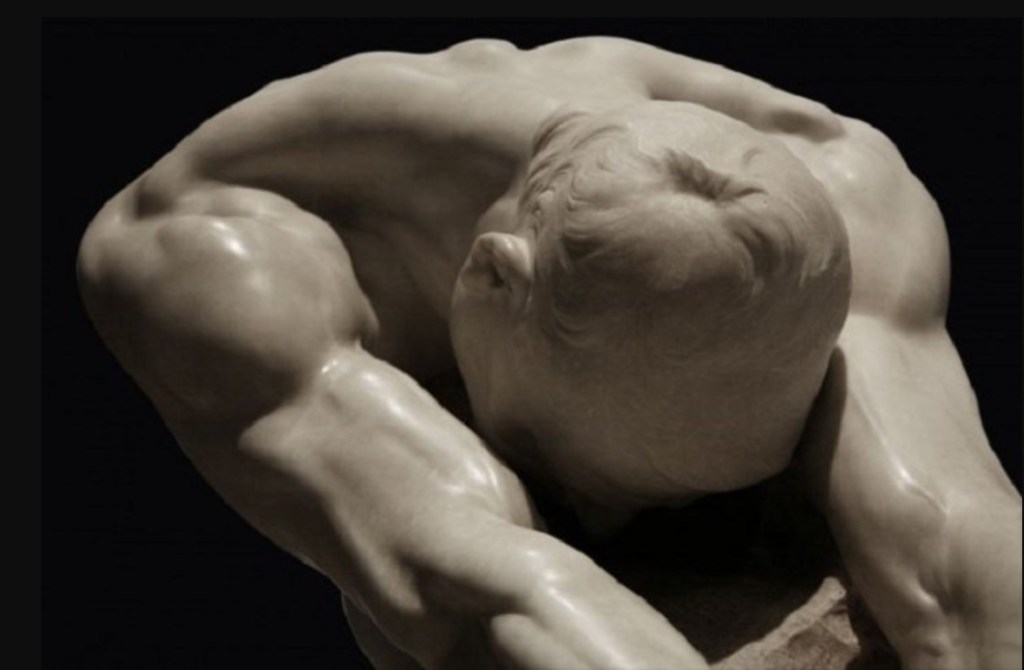 Lo sforzo che compie l’essere umano scolpito nel marmo è immane. Il suo corpo è completamente impegnato nel conflitto che pare non aver mai fine. È la superba allegoria della costante lotta che l’intera umanità deve combattere contro il male.