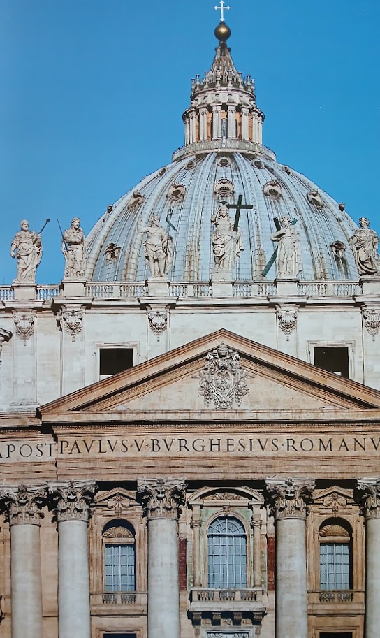 You should know that at first it was planned to also crown the drum of the dome with sculptures, which was then not done. The third arm, which was never built, was also supposed to be crowned with monumental travertine works for a total of 196 large sculptures.