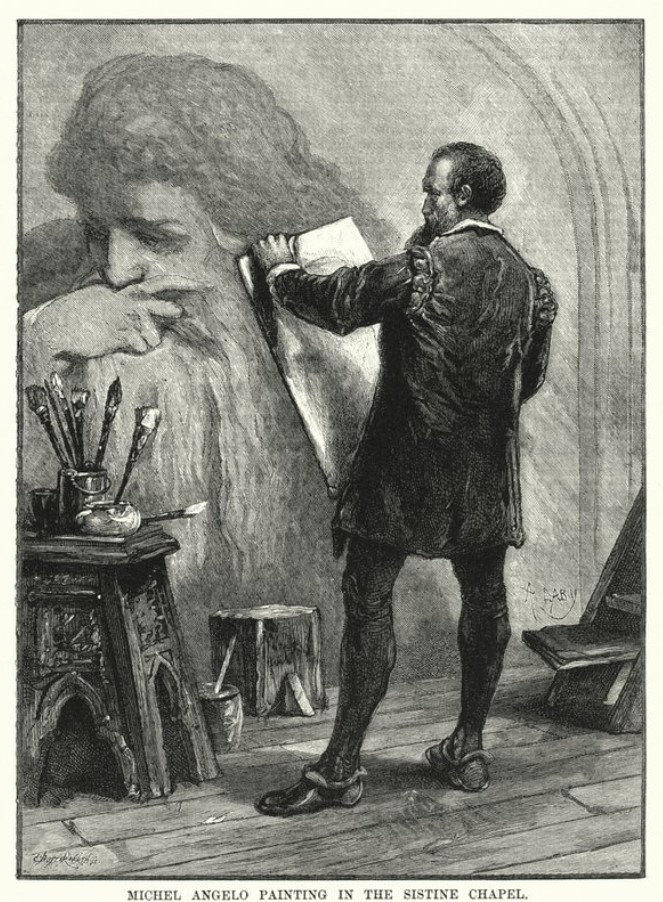 Michelangelo 550: l’incisione che mi ritrae al lavoro nella Cappella Sistina
