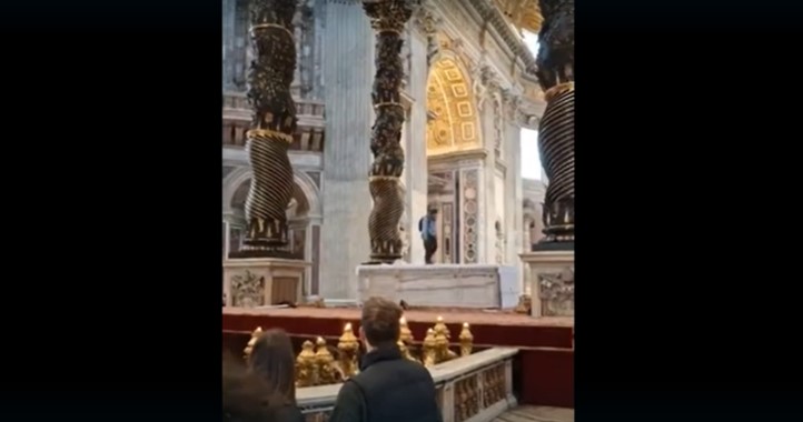 Heavy moments were experienced in St. Peter’s Basilica yesterday morning. A man climbed onto the Altar of Confession located in the shadow of Bernini’s Baldachin.