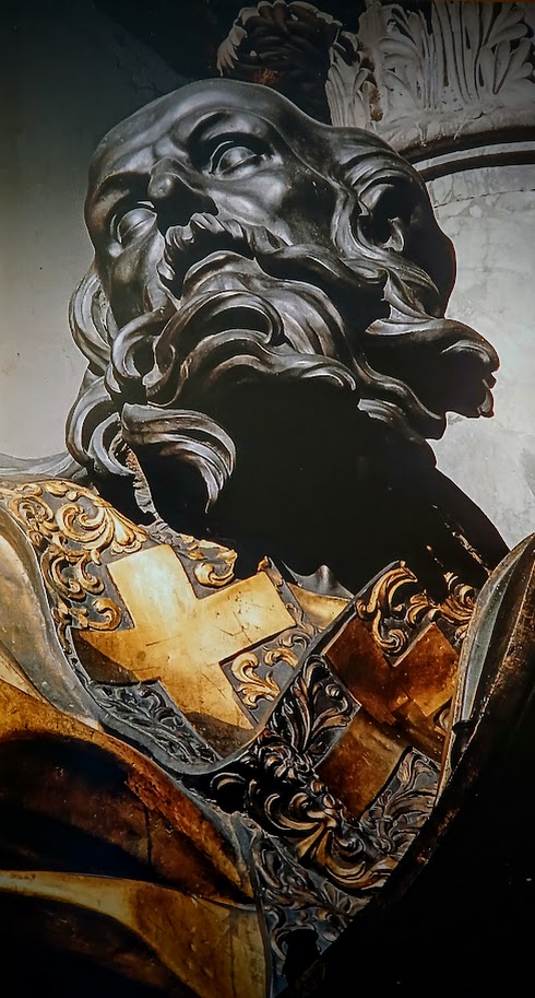 I would like to point out another detail. On the base in black marble from Aquitaine were inserted the papal emblems of Alexander VII, the commissioning pontiff.