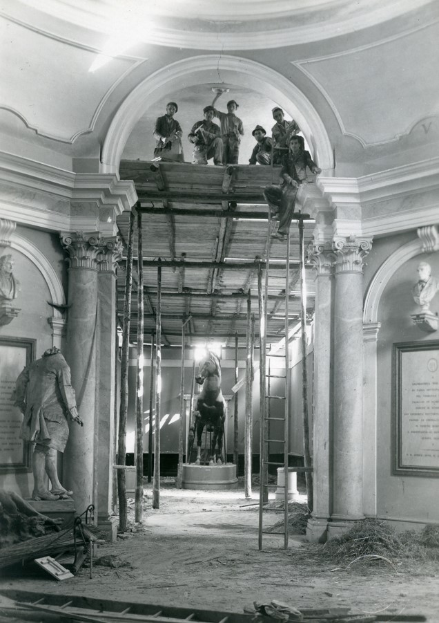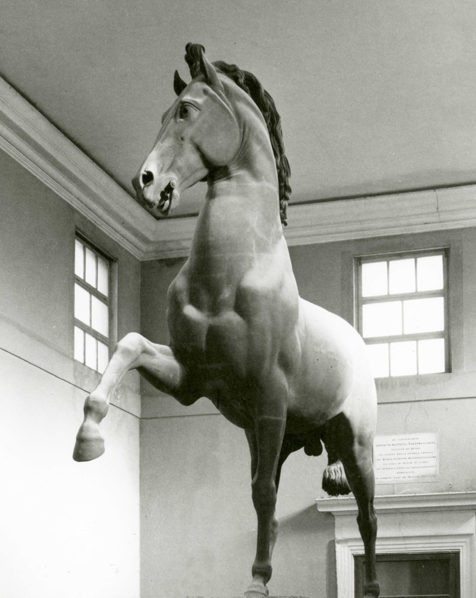 The Colossal Horse, however, remained unharmed and remained in the south hall until the end of the 1960s when, in view of some structural work on the hall, the then director Bruno Passamani decided to transfer the work to the storage rooms, having it sectioned into various parts, with the idea of later relocating it to a more suitable position.