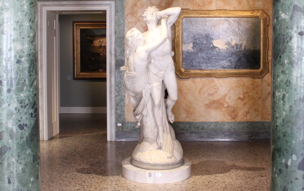 What is particularly striking about this work is not so much the classicist modeling but rather the theatrical imprint of the two figures that makes one think of a real staging of their lives. The perspective glimpse that one has when looking at the sculpture from the front is not enough to fully appreciate its dynamism.