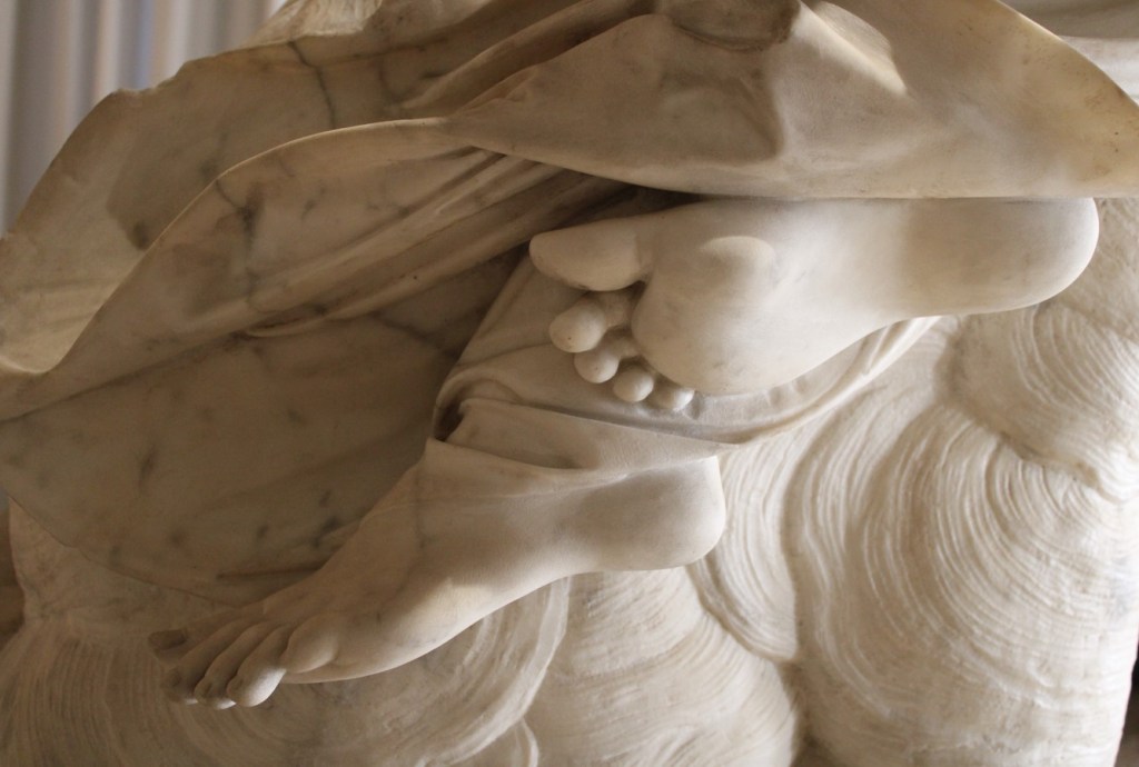 Lo scultore infatti, con questo gruppo, invita lo spettatore a girargli attorno per comprenderne meglio la leggerezza di quel marmo che sembra essere sorretto solo dall’aria che lo circonda.