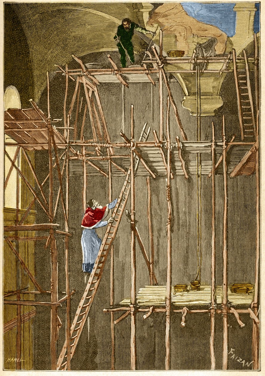 I realize that the creaking I hear is that of Pope Julius II who is climbing up the scaffolding. I was about to finish the work on the vault so, doing a quick calculation, at the time he was 69 years old and would die the following year.