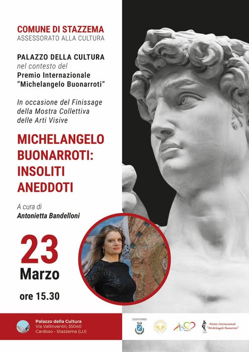 In occasione del finissage della mostra collettiva delle arti visive del Premio Internazionale “Michelangelo Buonarroti” vi racconterò un po’ di curiosi aneddoti che mi riguardano da molto vicino durante la conferenza dal titolo “Michelangelo Buonarroti: insoliti aneddoti”.