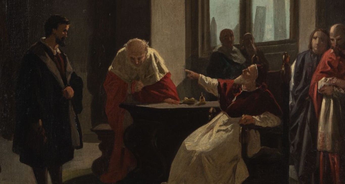 Michelangelo 550: Me in the presence of Julius II in Bologna, in the painting by Fanfani