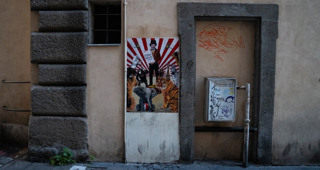 L’opera appena realizzata di Grebb dà il via alla mobilitazione nazionale con la quale la LAV chiede al Ministro della Cultura Giuli di attuare la legge delega “per il superamento dell’uso degli animali in circhi e spettacoli viaggianti”.
