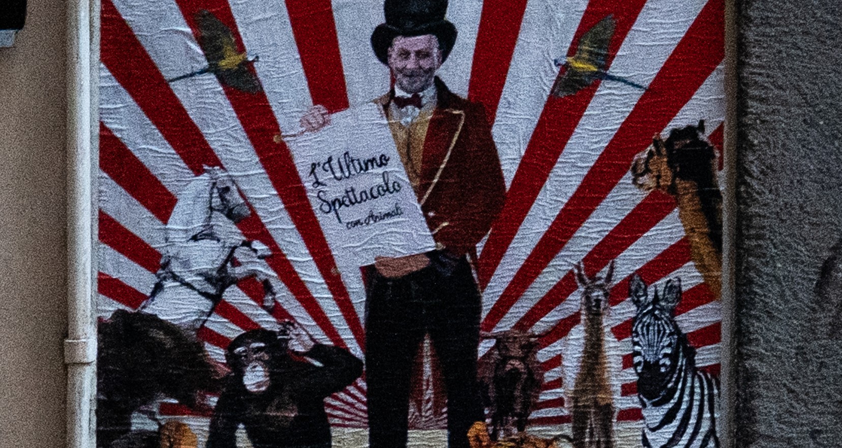 According to the DOXA survey, already in 2023 76% of Italian citizens had said they were against circuses that still use animals. Public entertainment shows with animals no longer make sense to exist, they only make animals suffer and have no educational value.