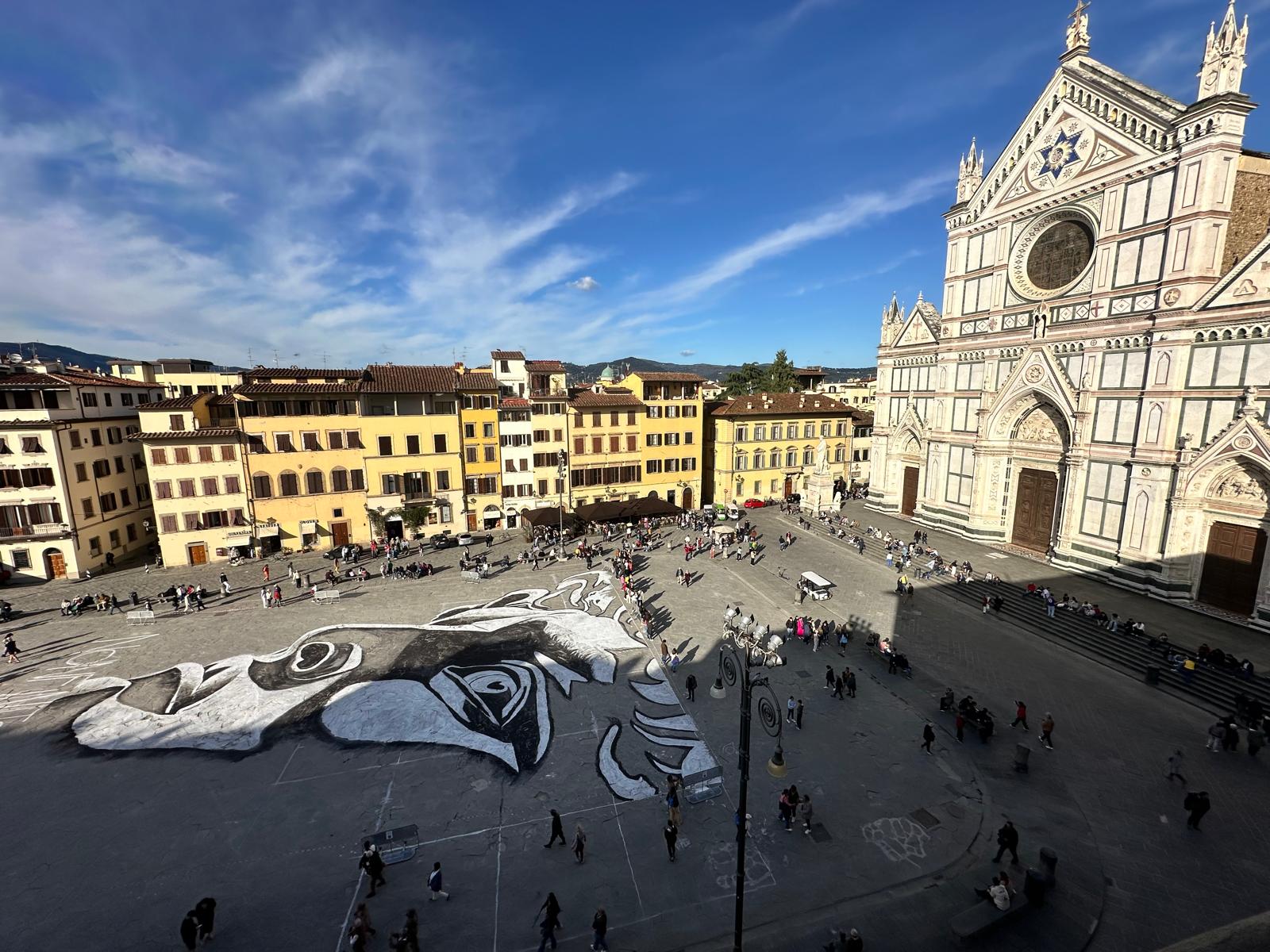 In Piazza Santa Croce, davanti alla chiesa che custodisce le mie spoglie, è comparsa sul selciato la testa del David che occupa circa 1500 metri quadrati di superficie.