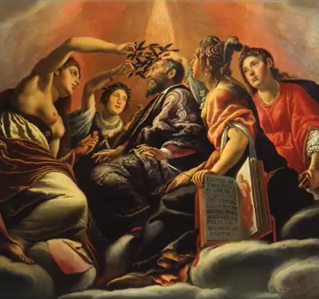 On the occasion of the 550th anniversary of my birth, I want to talk to you about the painting ‘The Four Arts crown Michelangelo’, created by Sigismondo Coccapani.