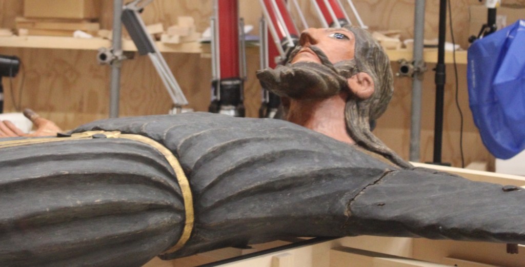 C’è stato un grande lavoro sulla struttura lignea, sul modo di agganciare la struttura alla croce e sul modo che da ora in avanti verrà utilizzato per dotare l’immagine in occasione delle feste dei suoi ornamenti sacri in modo che la collana, la corona e l’abito siano appoggiati senza intervenire sulla materia appena restaurata.