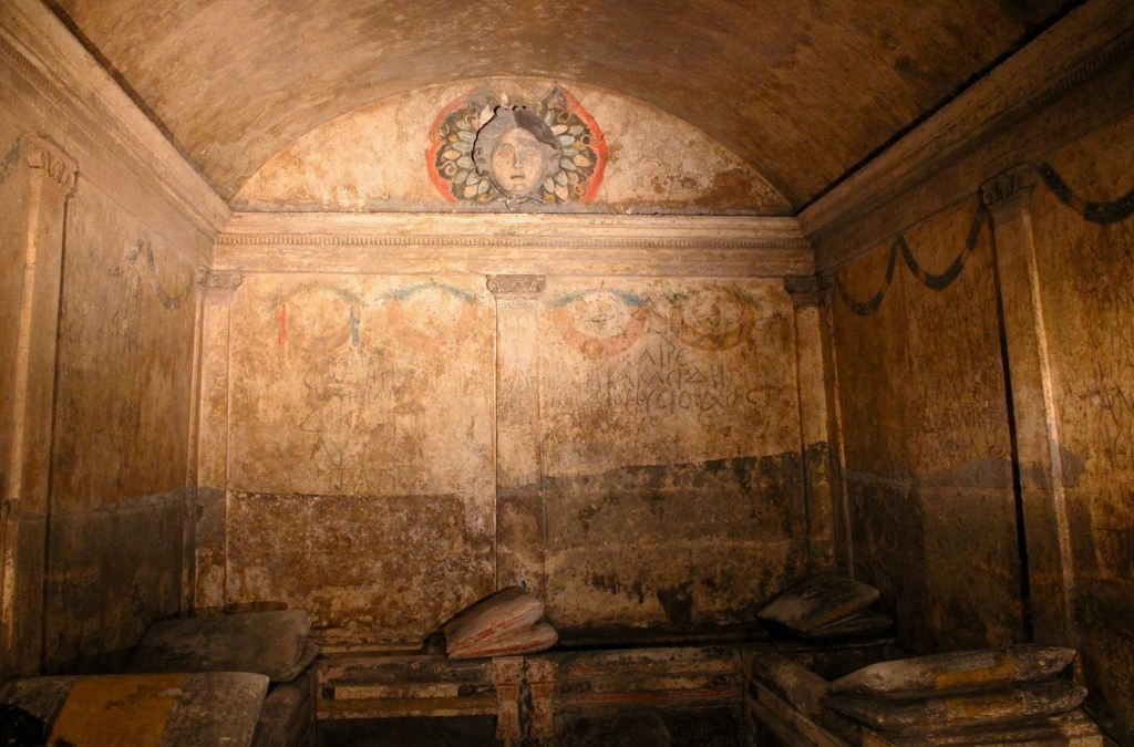 There are very few testimonies of Greek painting that have survived to our times but in the hypogeum there are several that show the degree of refinement achieved by the Hellenic painters.