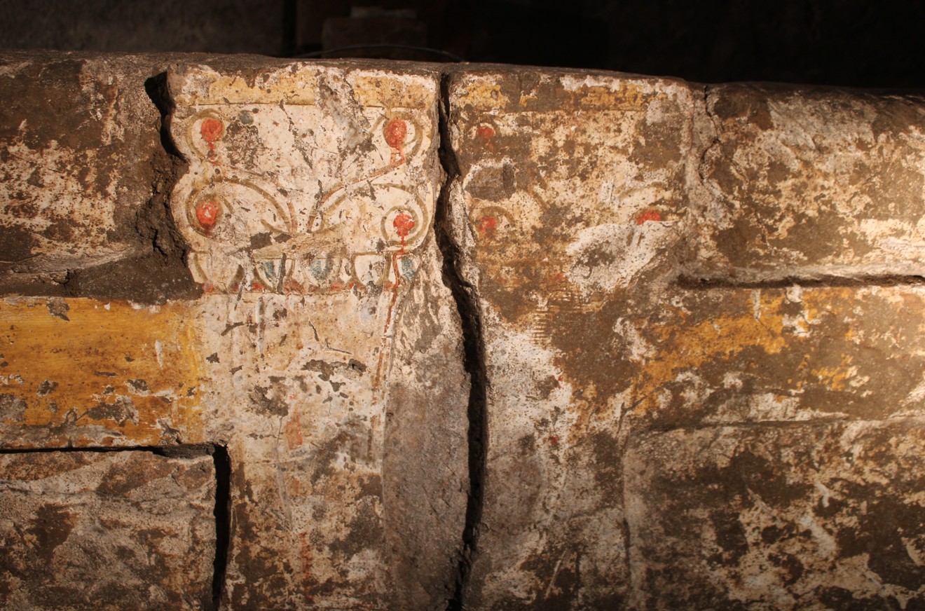 Ci sono il preziosissimo blu egizio, il giallo ocra, il rosso carminio e l’utilizzo delle terre verdi stese a pennello oltre 2300 anni fa e ancora ben visibili.