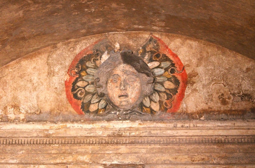 Senza dubbio l’ambiente più spettacolare è la camera sepolcrale C, dominata dall’alto dalla testa di Medusa policroma decorata con foglie, serpi intrecciate e la bocca semi dischiusa quasi fosse una scultura del Bernini che lascia intravedere i denti.