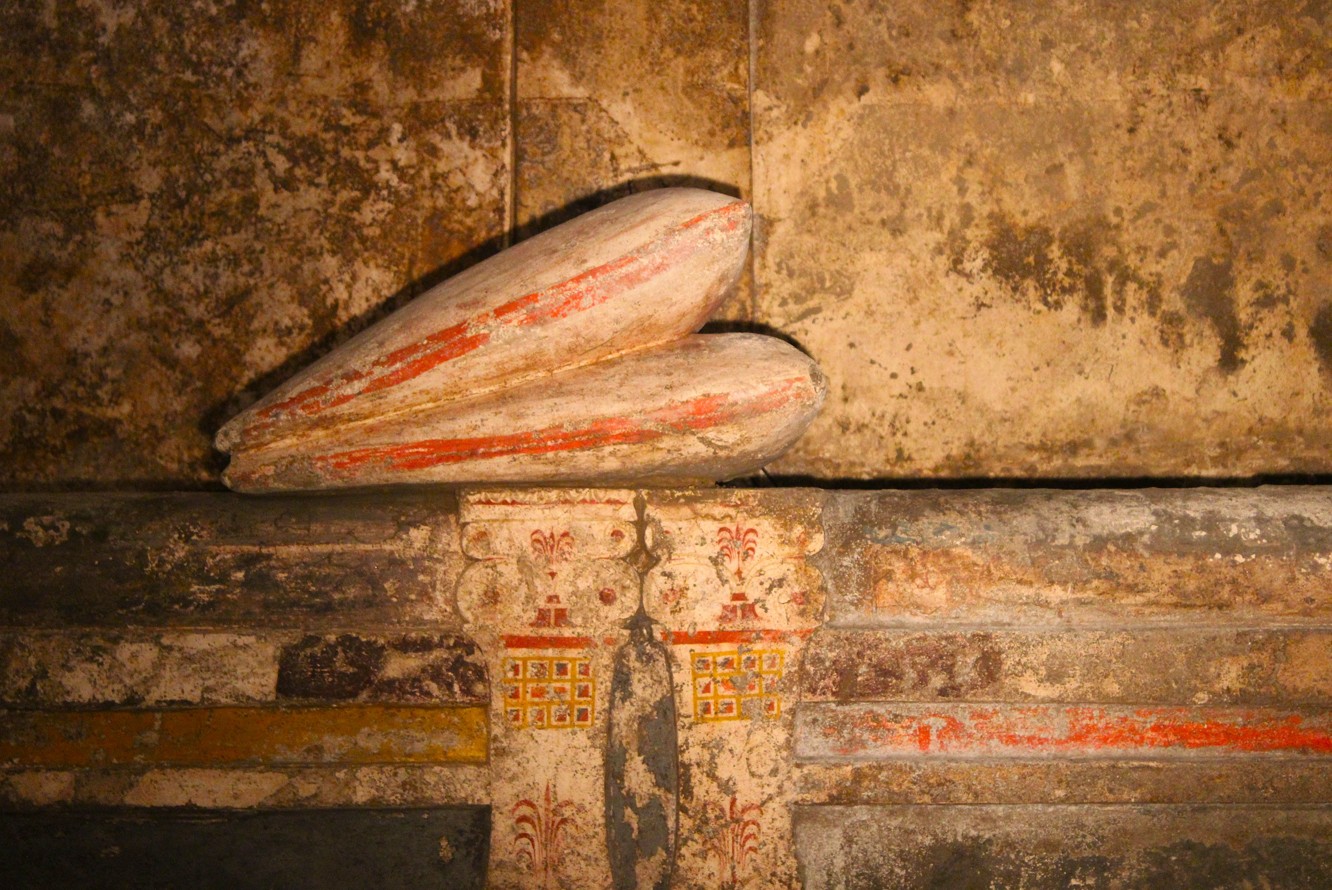The four burial chambers constitute an incredible heritage of Hellenic painting and architecture, very well preserved. Originally, the upper part dedicated to the cult of the dead was open to the sky: it was in fact the stratification of what is called the ‘lava of the Virgins’, a rain stream of debris and mud from Capodimonte, that buried everything century after century. The anoxic environment in which the original colors of the paintings remained for a long time, probably contributed to their preservation, despite the high humidity level in the air.