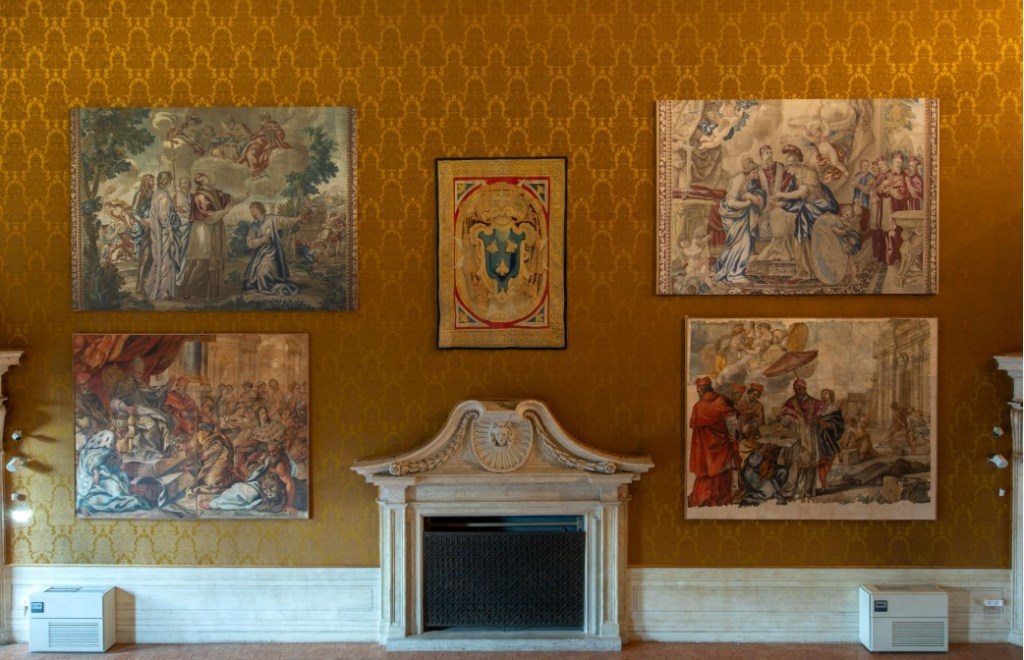 E’ un riallestimento storico. Dopo decenni, per la prima volta, in seguito a un attento intervento di restauro eseguito dal Laboratorio delle Gallerie Nazionali, i cartoni preparatori sono riproposti nel contesto per cui verosimilmente furono concepiti gli arazzi raffiguranti La Vita di Urbano VIII.