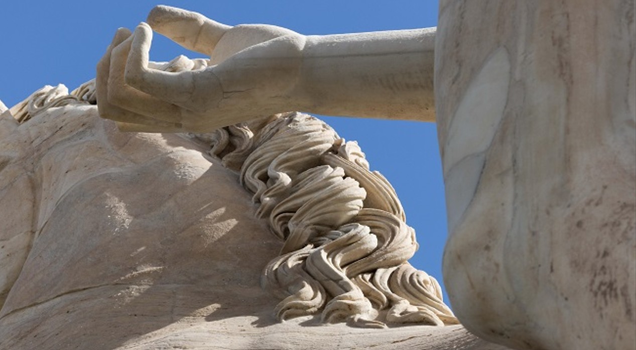 A complex intervention that lasted a total of 240 days. The two sculptures are made with numerous portions of ancient marbles of different sizes and types. A sort of assembly of marble fragments, mostly Pentelic but also integrations in Carrara marble, added during restoration.