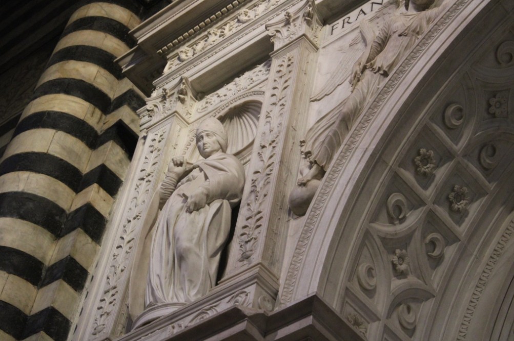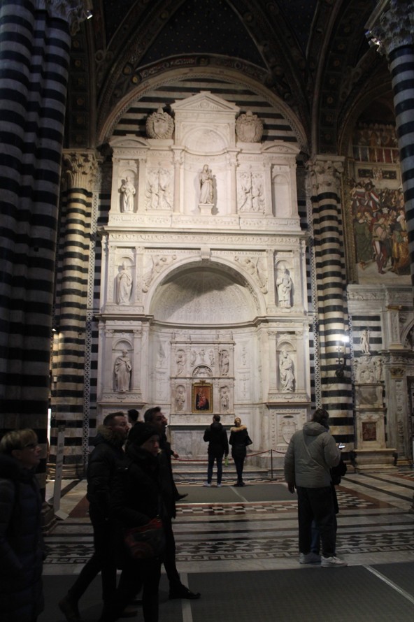 Cardinal Piccolomini then decided to have the sculptures to be inserted in the niches made by that insufferable Torrigiani who only sculpted Saint Francis, still visible today in the upper left part.