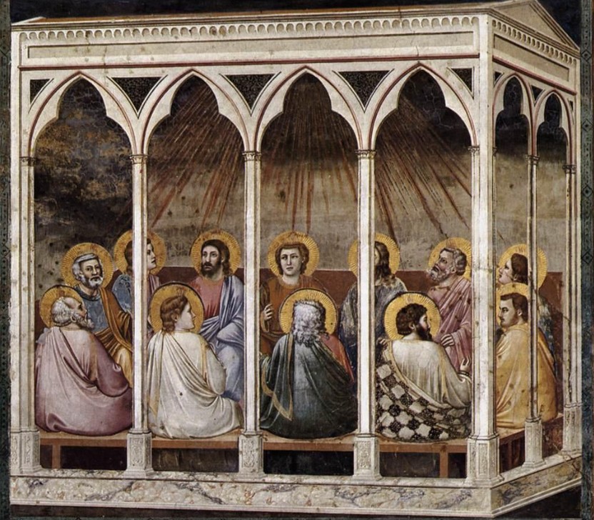 Giotto affrontò il tema tra il 1303 e il 1305, in uno dei riquadri del ciclo della Cappella degli Scrovegni a Padova. I dodici apostoli sono riuniti in cerchio e siedono su panche di legno al di sotto di un loggiato sorretto da colonne sottili.