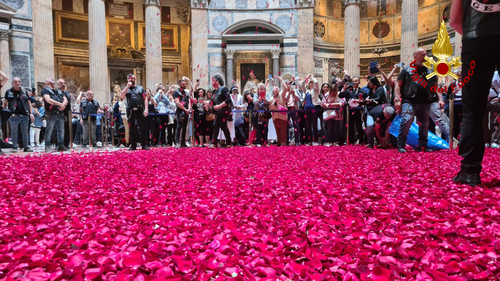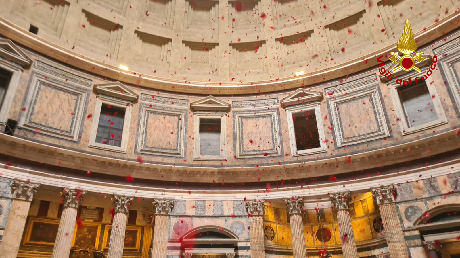 The Eucharistic celebration is scheduled for 10:30 am, together with the Basilica Choir and the Fire Brigade Band. At the end of the mass, around 12 pm, the Fire Brigade, who in the meantime will have climbed up to the dome of the Pantheon, will begin to rain petals from the oculus.