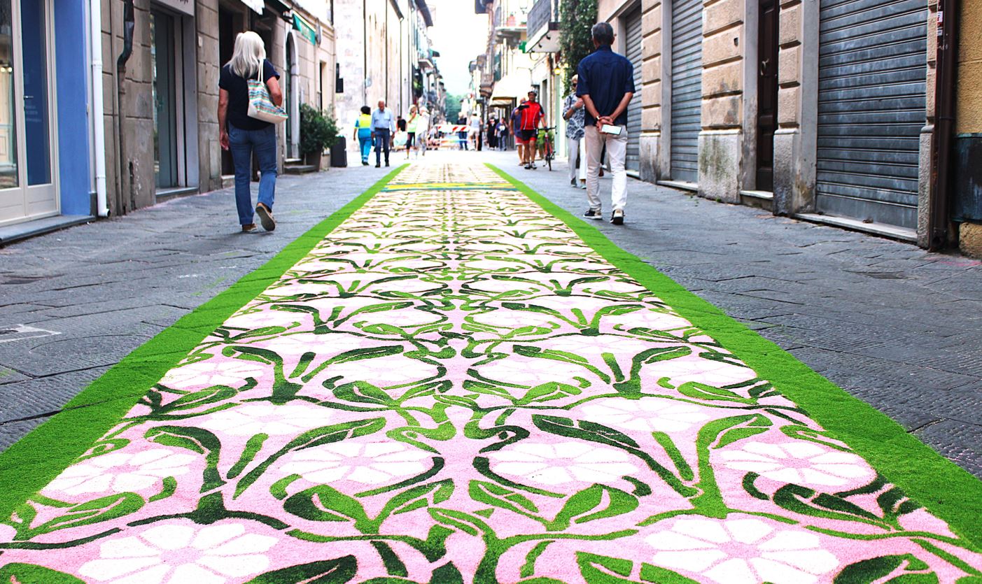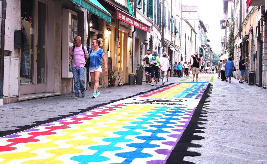 Sapete, la tradizione dei tappeti di segatura a Camaiore ha origine nel XIX secolo, con la sostituzione dei fiori con la segatura a partire dagli anni ’30 del ‘900.