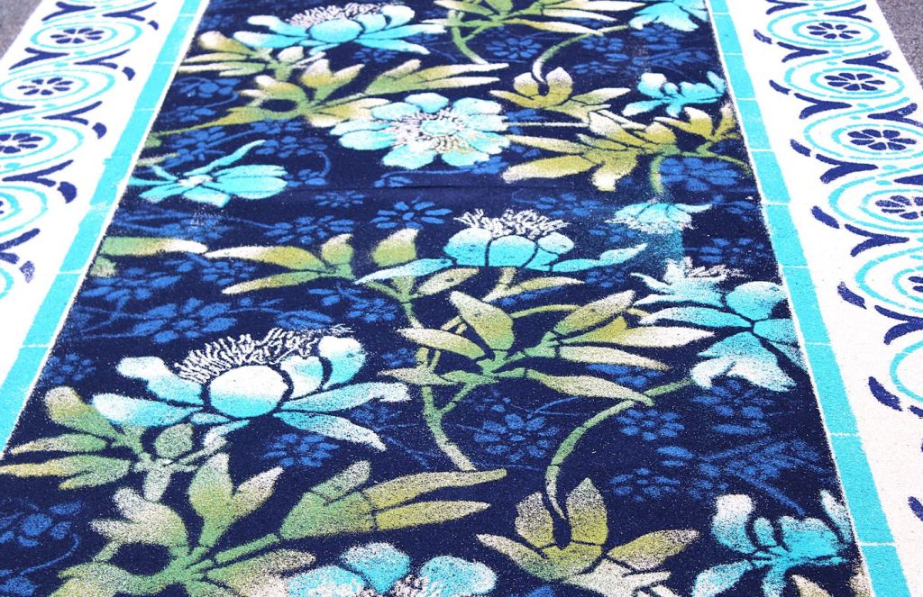 Each about two meters wide and with a length that can reach 50 meters, the ephemeral beauty of sawdust carpets is a collective undertaking that involves the entire community.